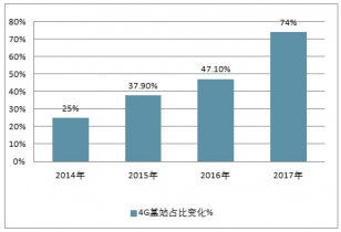 截至2017年前三季度,我國(guó)新增移動(dòng)通信基站數(shù)量44.7萬(wàn)個(gè),總數(shù)達(dá)到604.1萬(wàn)個(gè)。而4G基站的比重也在進(jìn)一步提升,截至2017年三季度4G基站占移動(dòng)電話基站的比重已從2014年的25.0%上升至74.0%。移動(dòng)通信4G基站數(shù)量已超過(guò)320萬(wàn),我國(guó)4G網(wǎng)絡(luò)的規(guī)模全球第.一,并且4G的覆蓋廣度和深度也在快速擴(kuò)展。