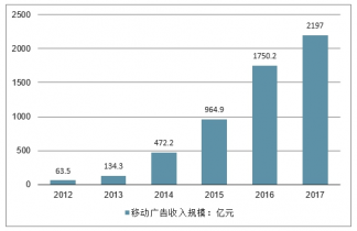 2012-2017年中國(guó)移動(dòng)廣告收入規(guī)模走勢(shì)