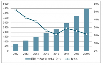 數(shù)據(jù)顯示:2012-2019年我國(guó)網(wǎng)絡(luò)廣告市場(chǎng)規(guī)模不斷增長(zhǎng),從2012年的769億元增至2019年的3717億元,增加了2948億元,年均復(fù)合增長(zhǎng)率達(dá)到30%,增長(zhǎng)十分迅速。但是隨著流量紅利逐漸消失,網(wǎng)絡(luò)廣告市場(chǎng)規(guī)模增速開始減緩,未來(lái)行業(yè)將需要通過(guò)尋找具有發(fā)展?jié)摿Φ募?xì)分市場(chǎng),進(jìn)行商業(yè)化變現(xiàn)。預(yù)計(jì)2019年全國(guó)網(wǎng)絡(luò)廣告市場(chǎng)規(guī)模將進(jìn)一步突破4500億元,增速減緩至21%左右。