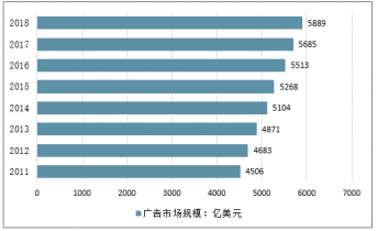 2011-2018年全球廣告市場規模及預測(單位:億美元)