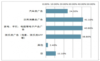 從樣本喜愛廣告類型來看,41.1%樣本關注日用消費類廣告,關注度最高為,主要由于此類消費品為居民消費必需品;40.8%樣本喜愛家電、手機等電子產品廣告,24.3%樣本關注汽車類廣告,反映樣本群體收入較高引發對電子產品、汽車的消費需求;38.8%樣本關注娛樂類廣告,排名第三,反映樣本群體對文化娛樂消費追求較強,其關注度僅略低于反映日常必需消費的日用消費廣告,其背后是居民娛樂文化消費習慣的養成,反映了居民未來在電影、游戲等方面的消費潛力。