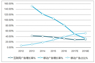 2012-2018年中國互聯網廣告及移動廣告市場規模增長率