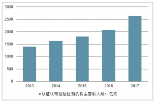 2013-2017年全國認(rèn)證認(rèn)可檢驗(yàn)檢測機(jī)構(gòu)主營收入情況