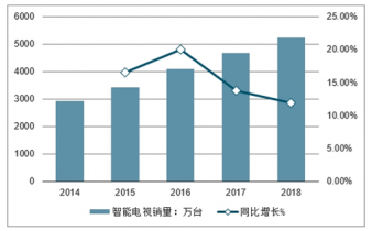 2014-2019年中國智能電視銷量及增長走勢(shì)