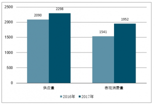 2016-2017年全國鉀肥供應(yīng)及表觀消費(fèi)量情況(單位:萬噸)