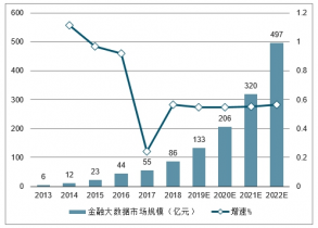 金融大數(shù)據(jù)市場(chǎng)規(guī)模及增速(億元)