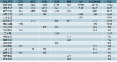華東地區(qū)水泥企業(yè)熟料產(chǎn)能分布