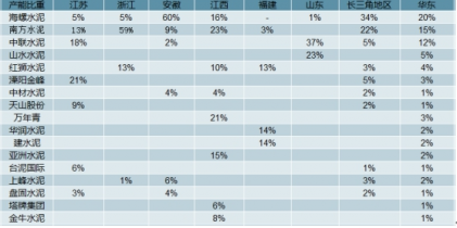 華東地區(qū)水泥企業(yè)熟料產(chǎn)能占比
