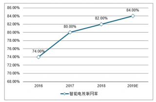 2016-2019年中國智能電視聯(lián)網(wǎng)率走勢