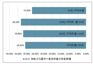 2018 年電子元器件個(gè)股按市值分布漲跌幅