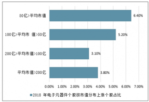 2018 年電子元器件個(gè)股按市值分布上漲個(gè)股占比
