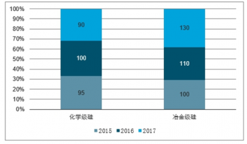2017年,我國(guó)220萬(wàn)噸工業(yè)硅產(chǎn)量中冶金級(jí)硅產(chǎn)量為130萬(wàn)噸,占總產(chǎn)量的59.1%;化學(xué)級(jí)硅產(chǎn)量為90萬(wàn)噸,較2016年產(chǎn)量減少10萬(wàn)噸,占比也從2016年的47.6下降至2017年的40.9%。在國(guó)內(nèi)工業(yè)硅需求持續(xù)增長(zhǎng)的背景下,化學(xué)級(jí)硅供應(yīng)量減少導(dǎo)致市場(chǎng)供應(yīng)相對(duì)短缺,是導(dǎo)致不同產(chǎn)品價(jià)差不斷拉大。