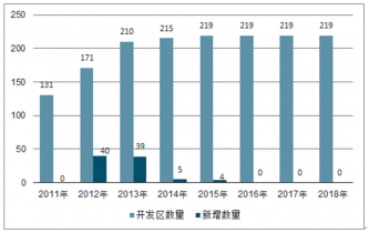 至2014年,國(guó)家經(jīng)開區(qū)的數(shù)量達(dá)到215家,自那以后,國(guó)家開發(fā)區(qū)的審批更為審慎。截止至2018年10月,全國(guó)經(jīng)開區(qū)共219家。