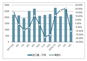 4月份,進口煤炭2228萬噸,同比下降10.1%。1-4月份,進口煤炭9768萬噸,同比增長9.3%。