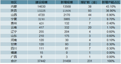 截至2019年中進入聯(lián)合試運轉(zhuǎn)礦井分布(萬噸)