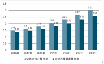 2016-2022年全球光纖預(yù)制棒產(chǎn)量和需求量預(yù)測(萬噸)