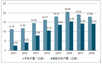 圖表:2014-2019年中國智能手機(jī)行業(yè)產(chǎn)量變化