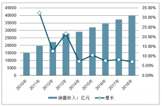 2010-2018年中國汽車零部件制造行業(yè)銷售收入及同比增長走勢