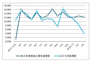 2017-2018年4月規(guī)模以上電子信息制造業(yè)增加值和出口交貨值增速情況