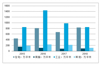 商業(yè)用地成交面積2017年為最低,僅為86.69萬平方米,但在2018年成交面積有所上升,其他用地成交面積在2018年達到近年來最低值為112.45萬平方米,土地市場越來越用途合理化,規(guī)范化發(fā)展。