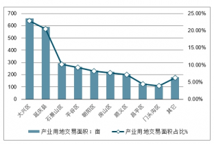2019年北京市所轄各區(qū)縣產(chǎn)業(yè)用地交易面積占比