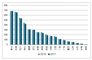 2017-2018年中國主要產(chǎn)省茶園面積情況(萬畝)