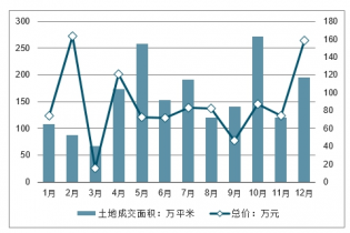 2019年各月天津市土地成交面積及總價(jià)走勢(shì)
