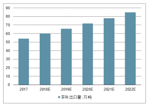 預計到2022年,我國茶葉出口量將達到84.94萬噸,成為世界上茶葉出口量最大的國家。