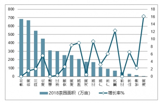2018年中國主要產省茶園面積及同比增長情況(萬畝)