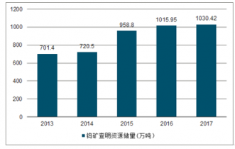 2013-2017年全國鎢礦查明資源儲量走勢圖