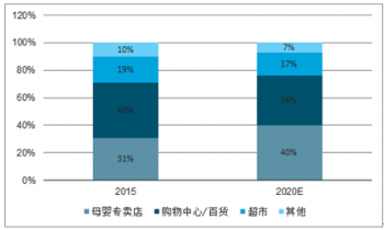 目前中國線下渠道競爭較為激烈。在線下渠道中母嬰專賣店是主流。2015年中國母嬰商品市場渠道中,購物中心/百貨占比最高,約為40%;但預計到2020年母嬰專賣店將成為最主流的線下渠道,占比從2015年31%提高至40%。