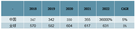 中國(guó)及全球光纖需求預(yù)測(cè)(單位:百萬(wàn)芯公里)
