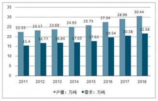 隨著離子交換技術(shù)的不斷發(fā)展離子交換樹脂已被廣泛應(yīng)用于工業(yè)水處理、濕法冶金、藥物分離提純、有機(jī)物凈化提純、工業(yè)催化等領(lǐng)域。據(jù)測算2017年我國離子交換樹脂需求量為20.38萬噸,2018年我國離子交換樹脂需求量增長至21.56萬噸。
