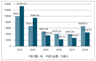 2013-2018年中國鎢礦砂及其精礦進口量及金額統(tǒng)計