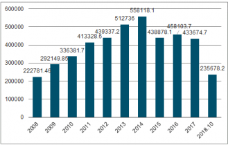 隨著環(huán)保政策逐步加深,煤改清潔能源進(jìn)一步推廣,傳統(tǒng)工業(yè)鍋爐的銷量提升,2015年及以后工業(yè)鍋爐產(chǎn)量驟然減低。2015-2017年維持在43-45萬噸蒸發(fā)量。2019年1-10月累計中國工業(yè)鍋爐產(chǎn)量235678.2蒸發(fā)量噸,同比減少-35%。