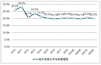 2010-2022年中國醫(yī)療信息化市場規(guī)模增速及預測