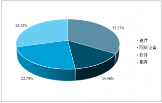 2017年中國電子政務(wù)行業(yè)硬件規(guī)模960.71億元,占比33.57%;網(wǎng)絡(luò)設(shè)備規(guī)模413.82億元,占比14.46%;軟件規(guī)模650.77億元,占比22.74%;服務(wù)規(guī)模836.50億元,占比29.23億元。