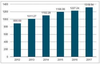 2012-2017年中國糖果巧克力行業(yè)規(guī)模以上企業(yè)銷售產(chǎn)值
