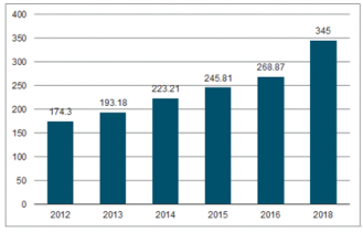 寧夏清真食品行業(yè)在全國也占有一定地位,2012-2016年,寧夏清真食品企業(yè)總體市場規(guī)模年均復(fù)合增長率為11.55%,2018年在345億元左右。