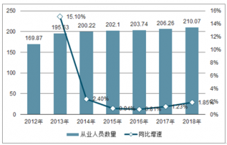 2012-2018年交通工程咨詢行業(yè)從業(yè)人員數(shù)量及同比增速
