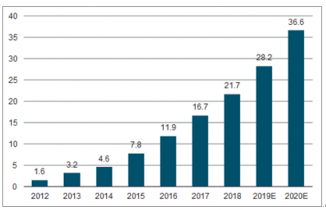 圖表4:2016-2018年全球3D打印市場(chǎng)規(guī)模