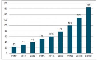 圖表5:2016-2018年全球3D打印市場(chǎng)規(guī)模統(tǒng)計(jì)表