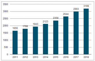 圖表:2016-2018年水利工程生態(tài)修復(fù)市場(chǎng)規(guī)模