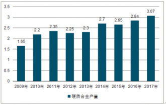 2009-2017年中國硬質(zhì)合金產(chǎn)量情況(萬噸)
