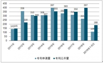 2012年受行業(yè)政策和宏觀經(jīng)濟(jì)發(fā)展的影響,專利申請(qǐng)數(shù)量激升至358項(xiàng),2014-2017年專利申請(qǐng)量維持在300項(xiàng)以上,但呈波動(dòng)下降趨勢(shì),2019年受到保健品行業(yè)爆雷的影響,專利申請(qǐng)量繼續(xù)下滑。而從專利公開(kāi)量來(lái)看,整體呈現(xiàn)上升趨勢(shì),截至2019年5月30日,專利公開(kāi)量188項(xiàng)。