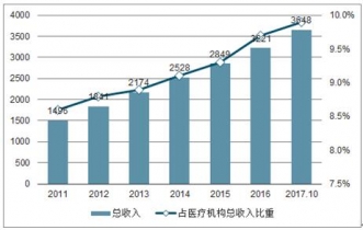 2011-2017年中國(guó)中醫(yī)類醫(yī)療機(jī)構(gòu)收入