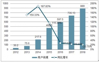 2012-2019年中國印刷O2O用戶規(guī)模及增速