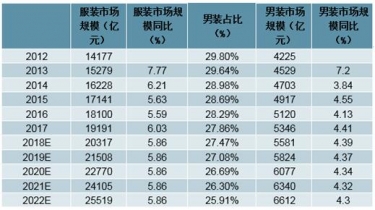 2022年男裝市場規(guī)模預(yù)計超過6500億元