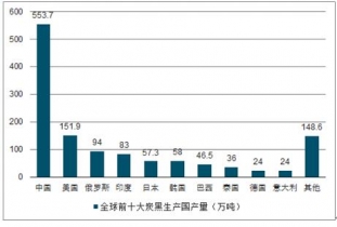 2017年全球前十大炭黑生產(chǎn)國(guó)產(chǎn)量對(duì)比