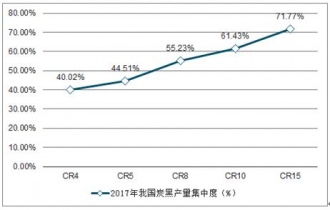2017年我國(guó)炭黑產(chǎn)量集中度